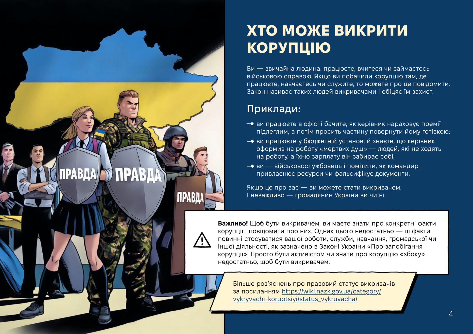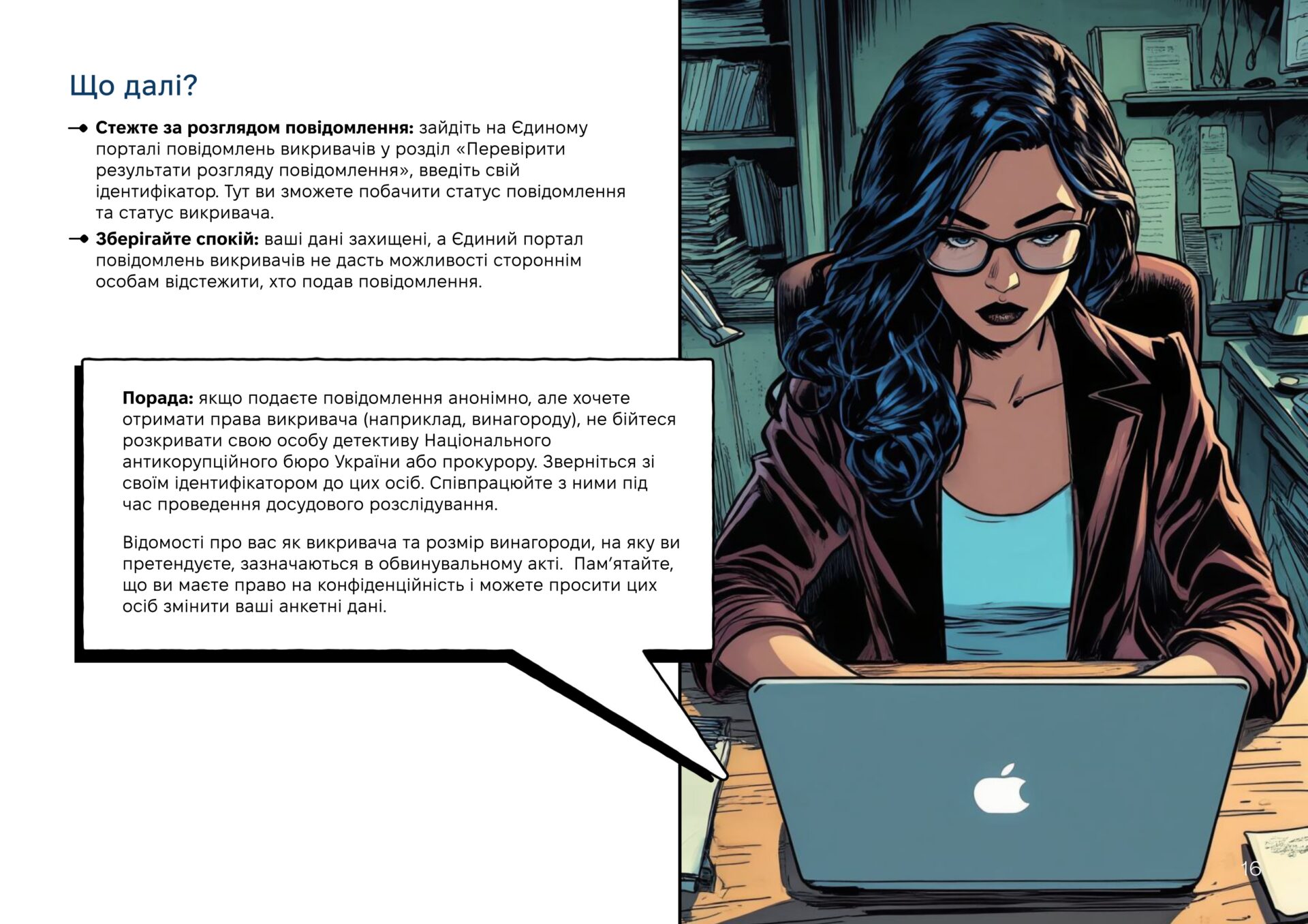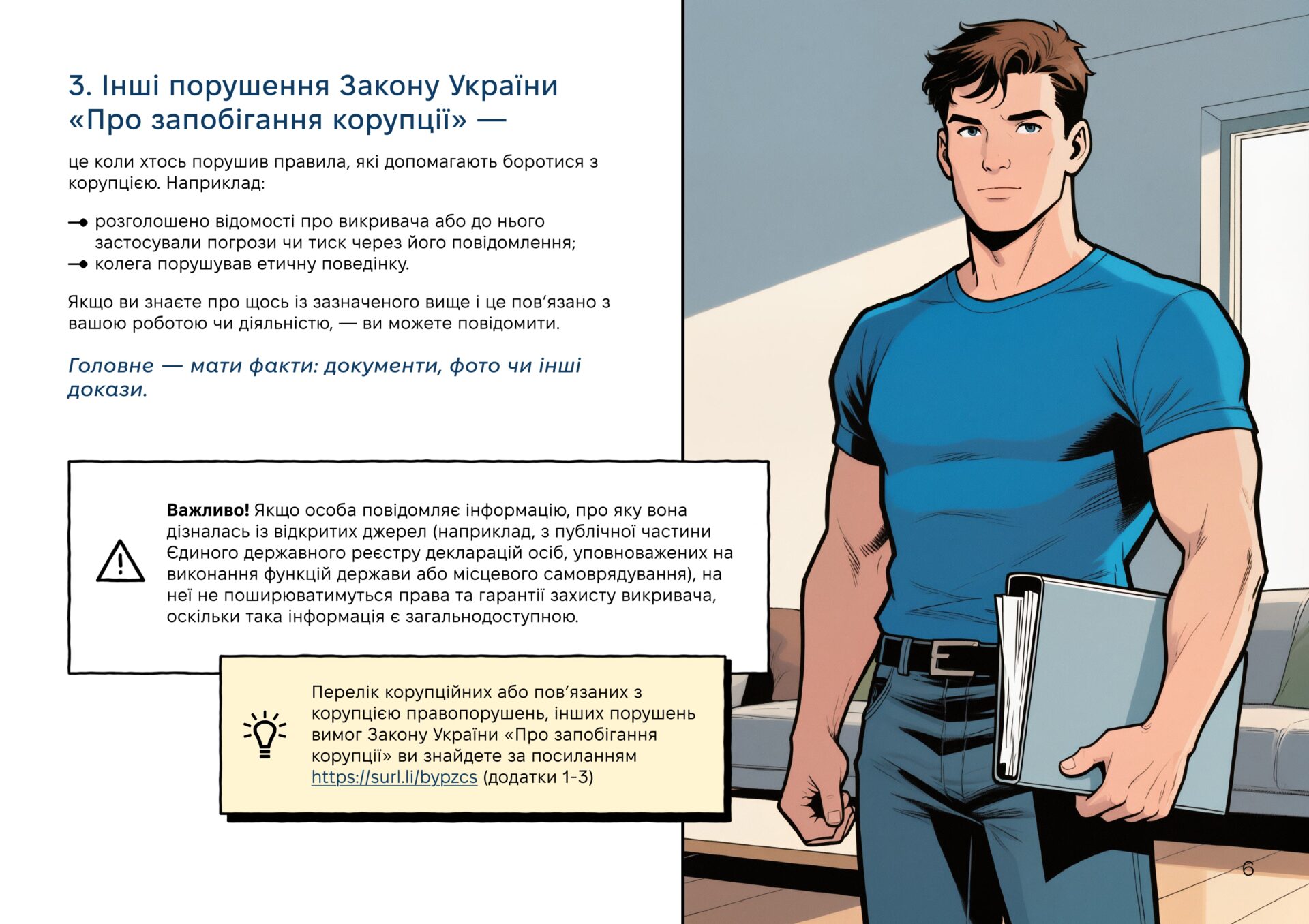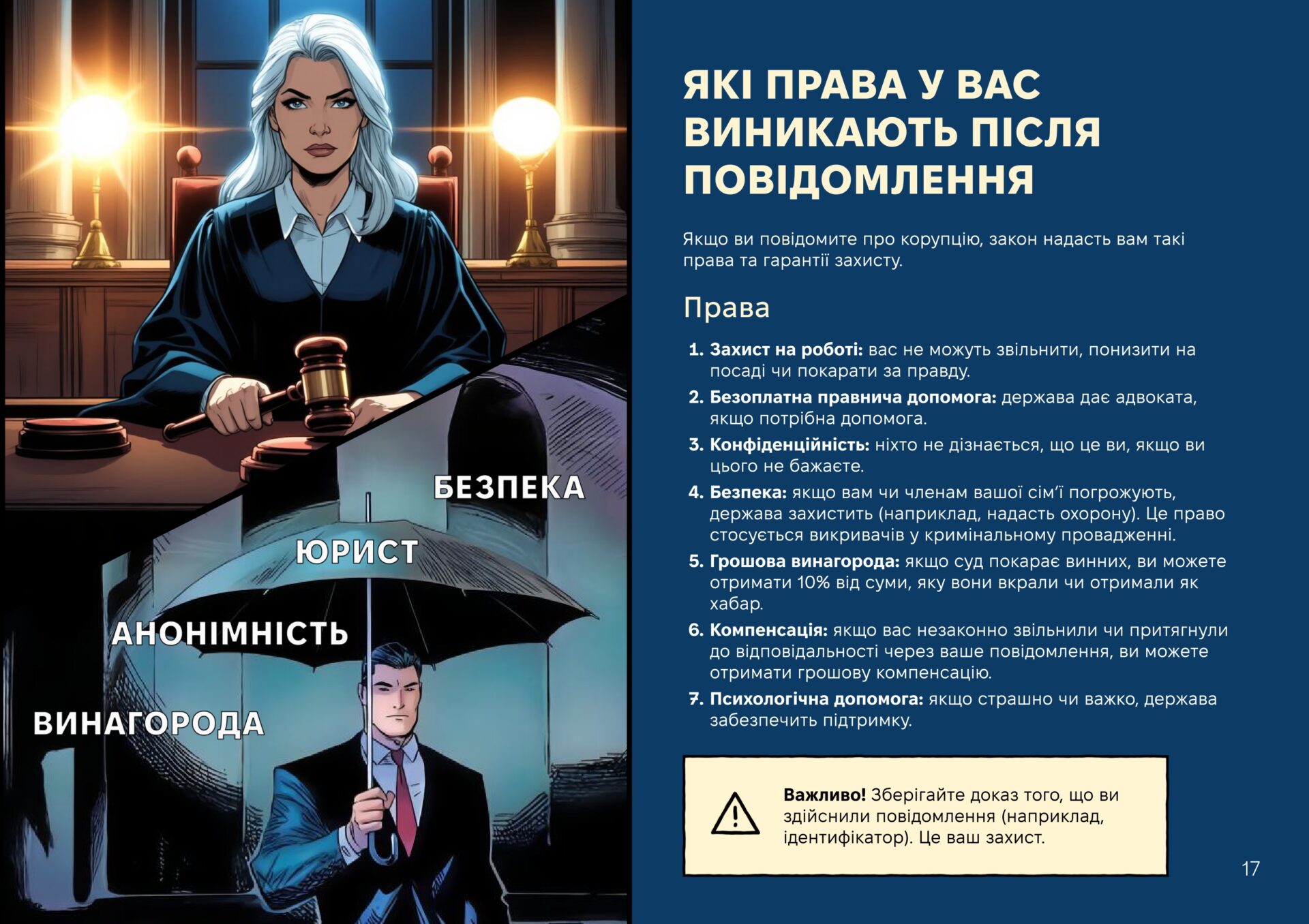Більше роз’яснень про правовий статус викривачів за посиланням: https://wiki.nazk.gov.ua/category/ vykryvachi-koruptsiyi/status_vykruvacha/