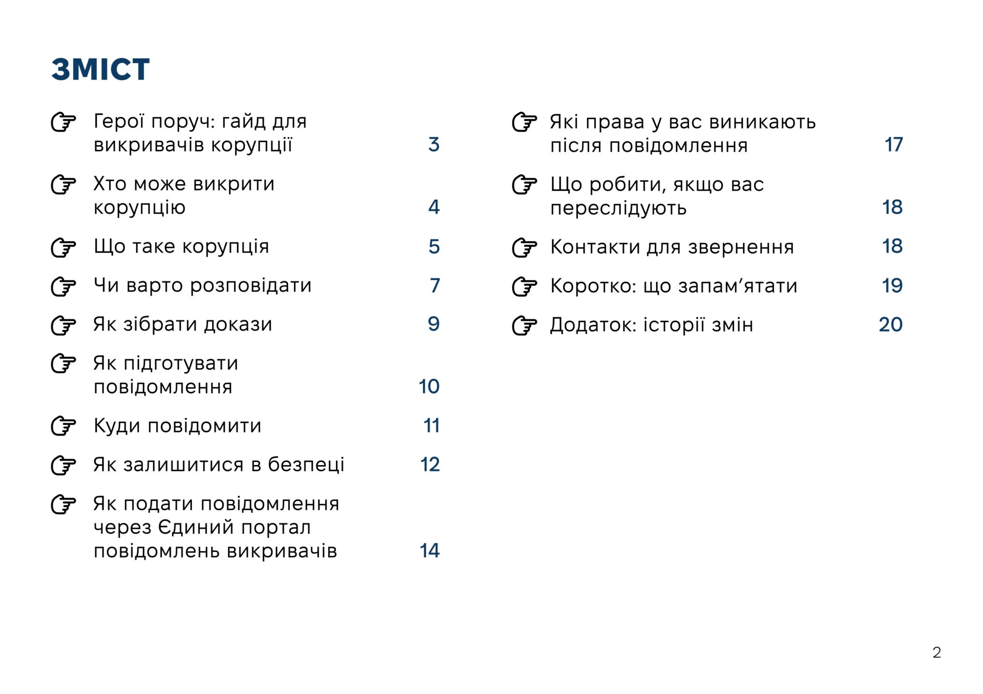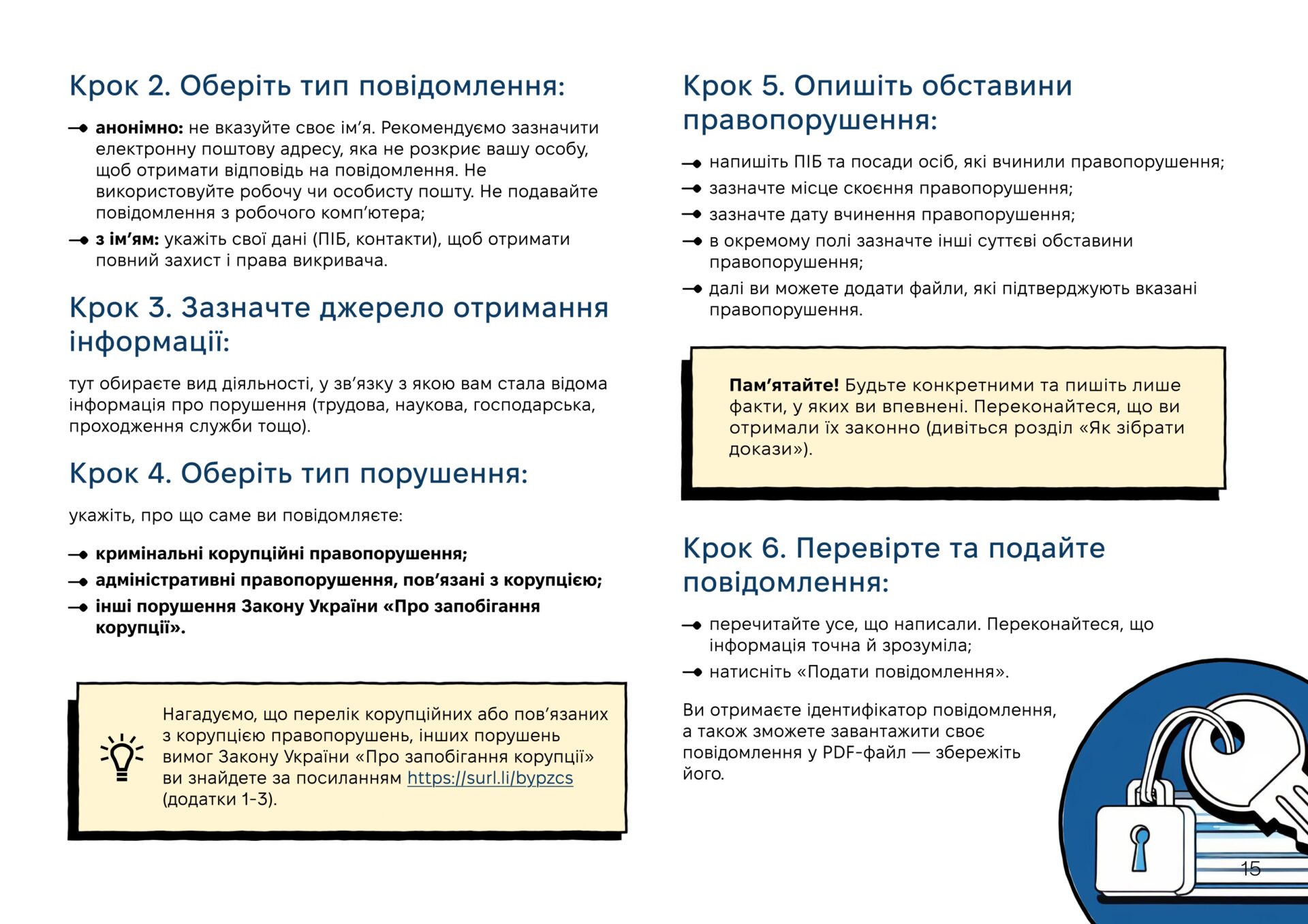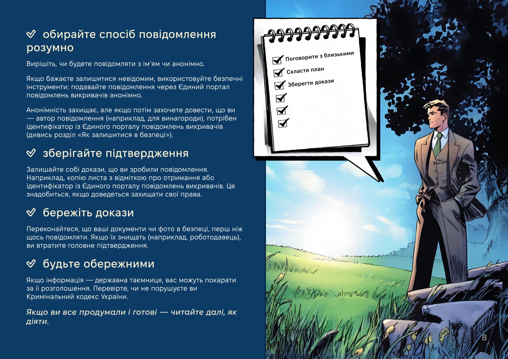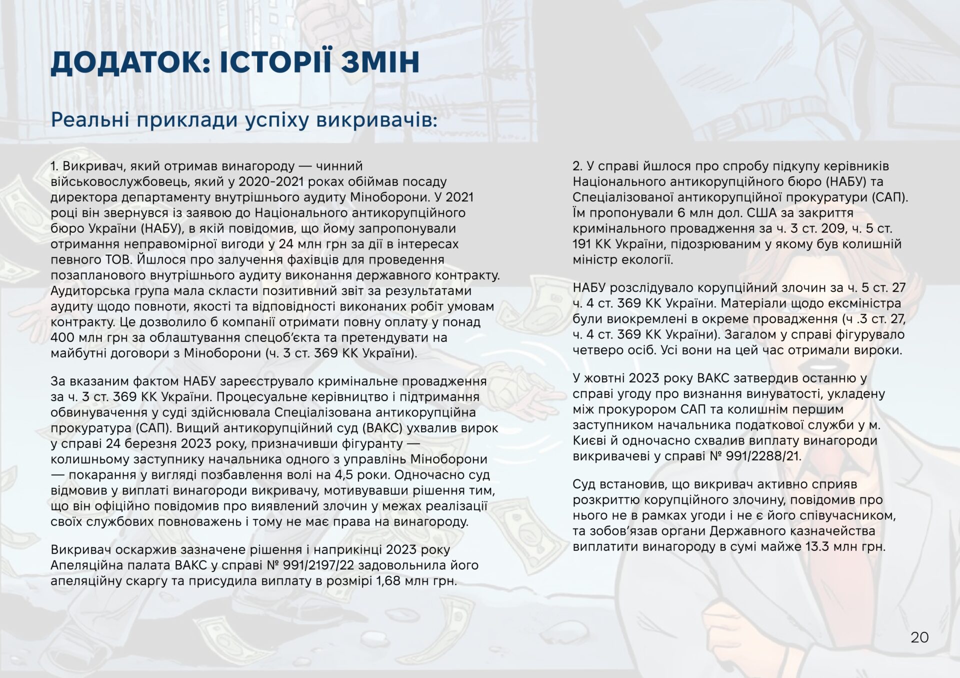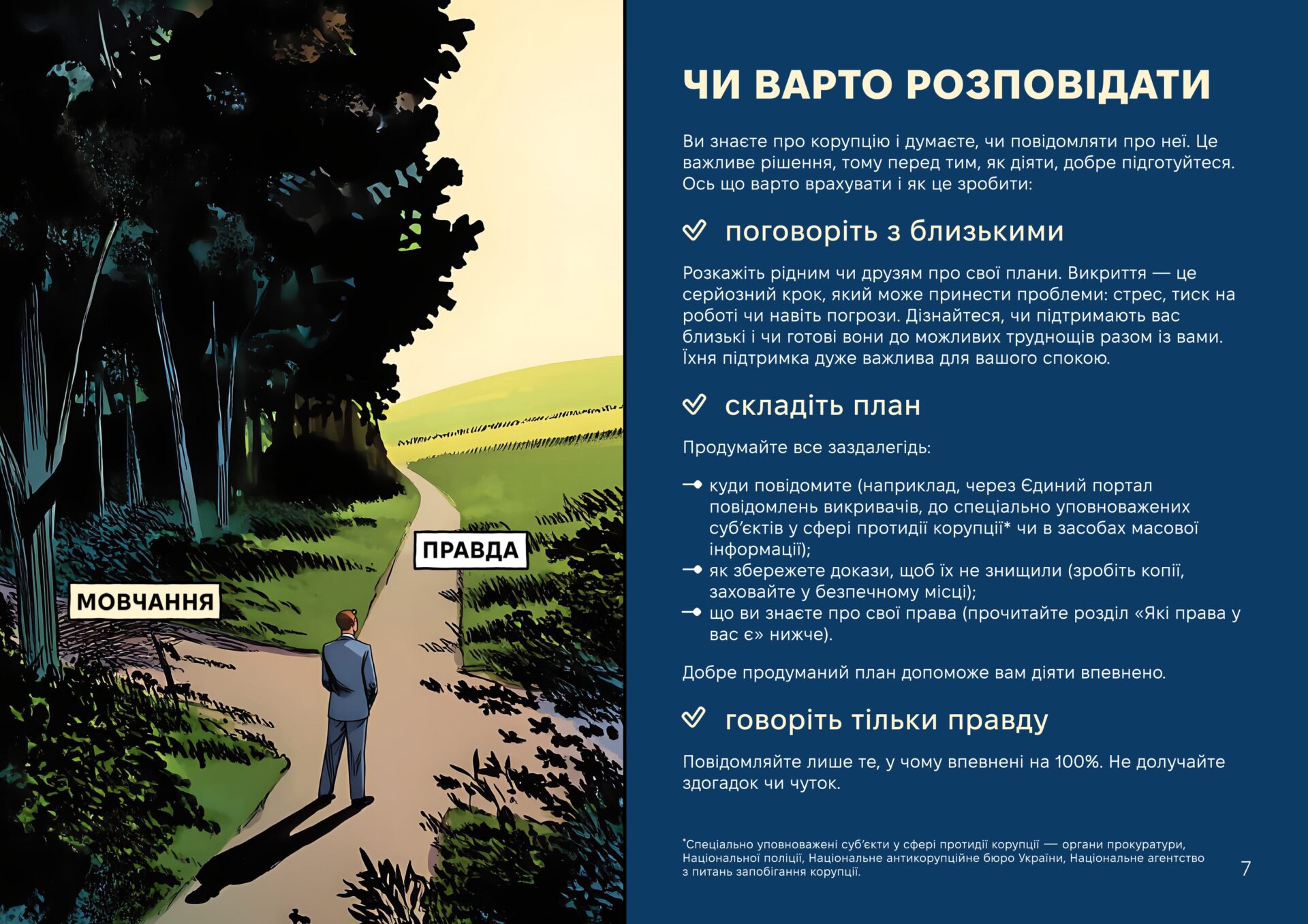 Більше роз’яснень про правовий статус викривачів за посиланням: https://wiki.nazk.gov.ua/category/ vykryvachi-koruptsiyi/status_vykruvacha/
