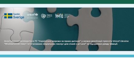 Анкетування проводиться ГС “Українська мережа за права дитини” у межах реалізації проєкту Unicef Ukraine “Мінімальний пакет інтегрованих соціальних послуг для сімей з дітьми” за підтримки уряду Швеції.