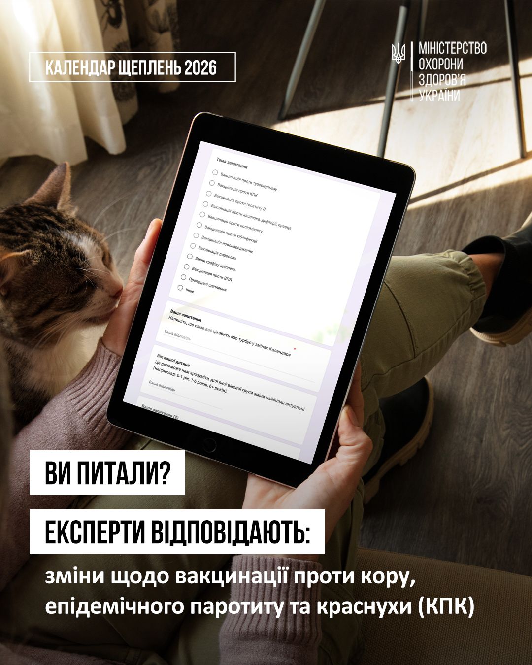 Друга доза КПК в оновленому Календарі щеплень перенесена з 6 років на 4 роки . Курс щеплень складається з першої дози в 1 рік та другої — у 4 роки. Щодо дітей, яким у 2026 році виповниться 6 років, то їх запрошуємо на вакцинацію разом із 4-річними дітьми.